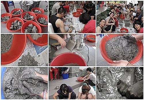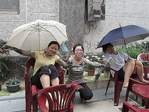 由於天氣陰晴不定,重頭戲泥敷押後到第五天才進行,眾女士都心急如焚,可是泥敷的前期工作都不少,一大清早,大家排毒完畢後,就馬上趕工,準備下午全身泥敷去也!