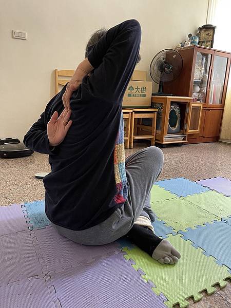 在她努力做這些動作之後,雙手已經可以在背後互扣在一起了。