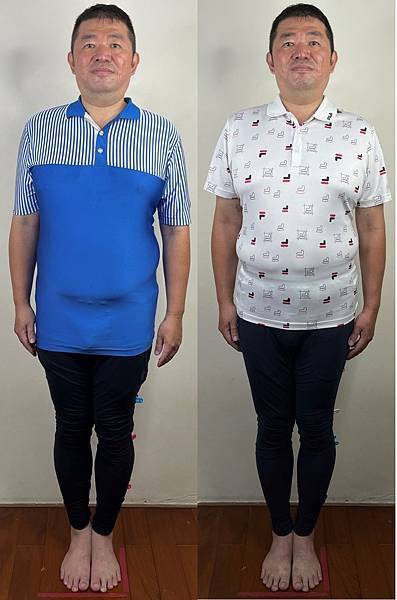 #滿月成績報告:雖然斷食營結束時體重只降了3.8公斤,腰圍少了7.5公分,但持續的每天努力,他的體重從一開始的88.6公斤來到了77.6公斤,一個月的時間足足少了11公斤,腰圍也是變小很多。